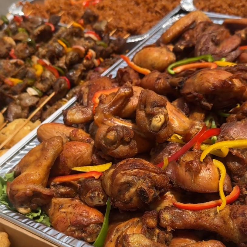 Complete catering package (minimum order: 10 persons), includes appetizers, Jollof rice, and grilled or fried chicken. Ideal for events and celebrations. There’s no limit to the number of orders that can be placed.